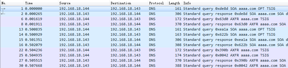 可见aaaa.com传输了三次,对应三个view。而且每次传输过程中都带了TSIGKEY。