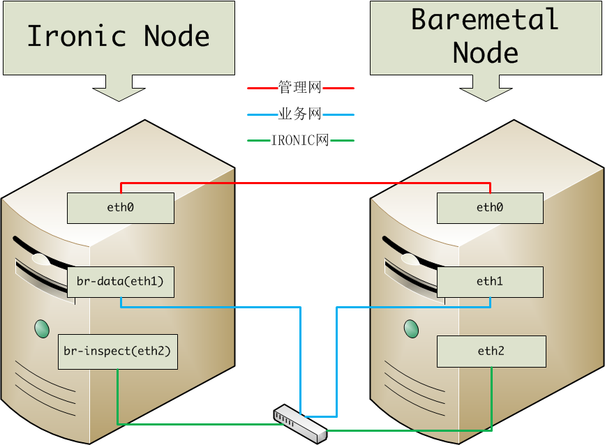 如上面的拓扑图所示,br-inspect作为inspect网络的网桥,连接了Baremetal Node的eth2网卡,所以配置ironic port,使用Baremetal Node的eth2网卡mac地址关联node uuid